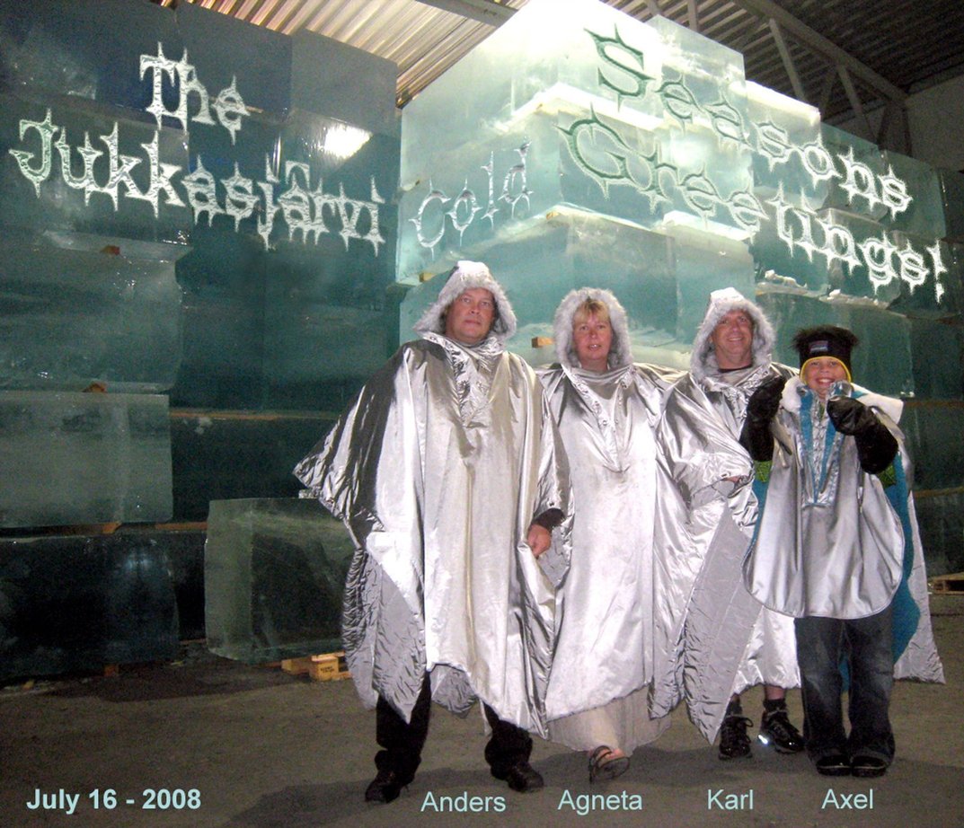 Vi körde ända upp till Kiruna och bodde där på Hotell Ferrit där vi såg Kebnekajse och norska fjäll i solnedgången. Ville här bara visa att vi också var till ishotellet i Jukkasjärvi som håller öppetr under sommaren i en stor kyld hall med is där man fick snickra och ha sig. Faktiskt kul.Vi gjorde blivande julkort där.
