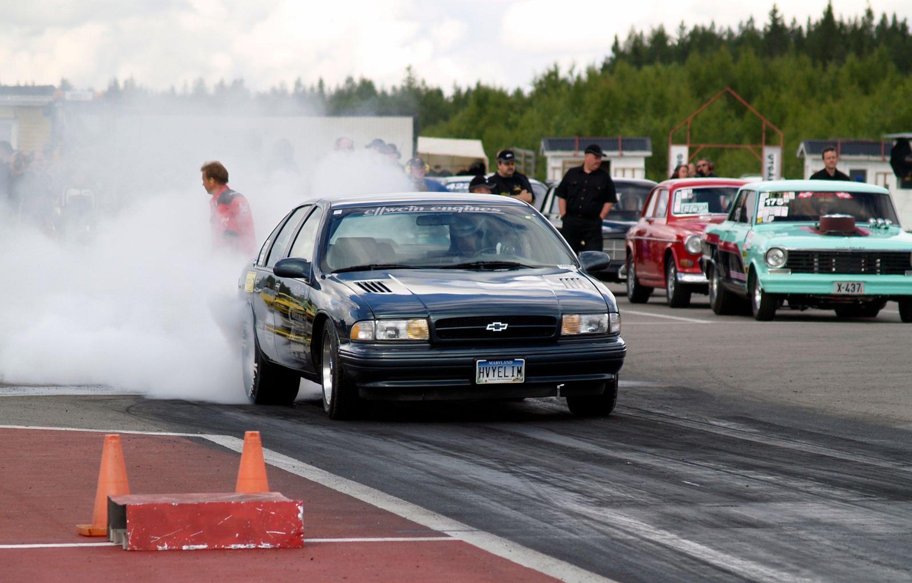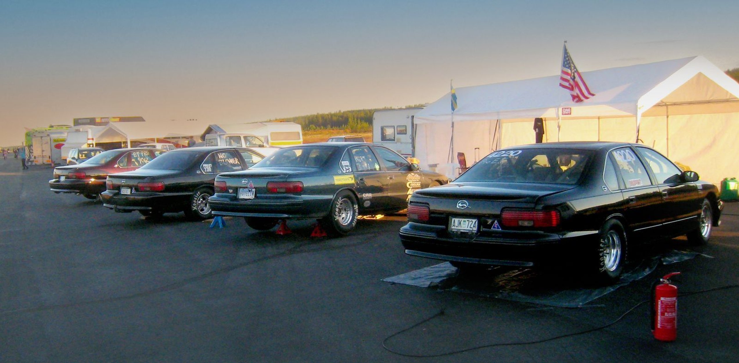 Detta var salongen för Karl Ellweins Impala SS. Notera björken längst till höger som bevis på att detta var i Umeå! Själv var Karl på väg hem från Finland där han hälsat på Eero Pirttinen med familj i Helsingfors och sedan i Vasa familjen Ekström, alltså Tobbe, Anna, Kjell och Chevelle. Schemat var fyllt. Men nu ville vi till Pite Dragway och GASA! Se i senaste Bilsport Classic nr 1 2026 hur det gick, inte som någon kunde gissat.