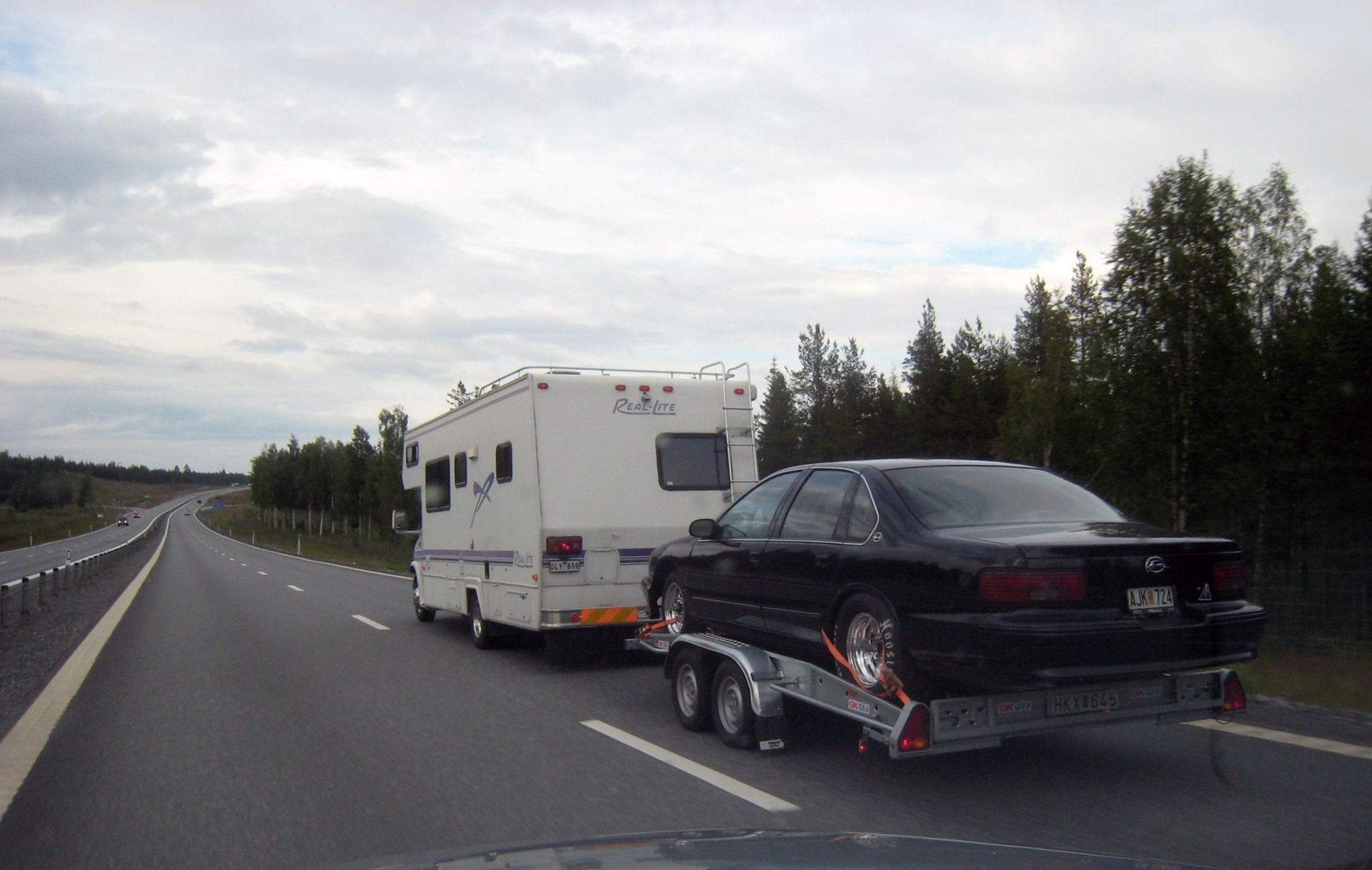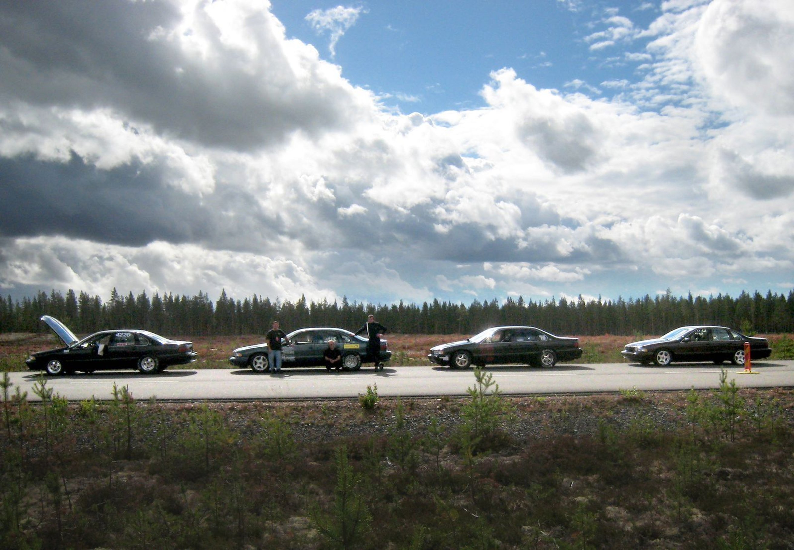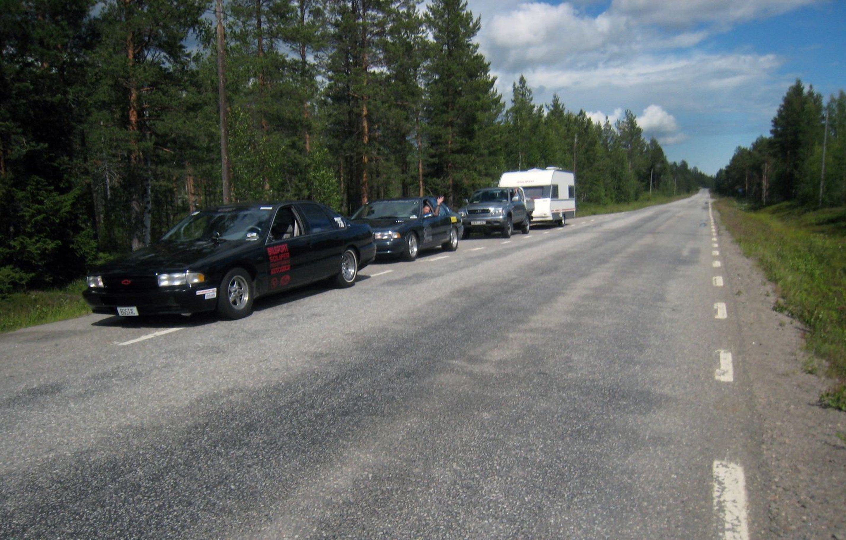 Så såg vår karavan ut, Blackout SS, The Heavy Eliminator och Fru Agneta som körde Toyotan med husvagnen vi hyrt i Göteborg. Nu skulle vi lämna våra SS i en hangar i Fällfors och ta Toyotan med husvagn en sväng upp i Norrbotten. Tack Dick Koning för att vi fick låna din Toyota Hilux turbodiesel! Bäst.