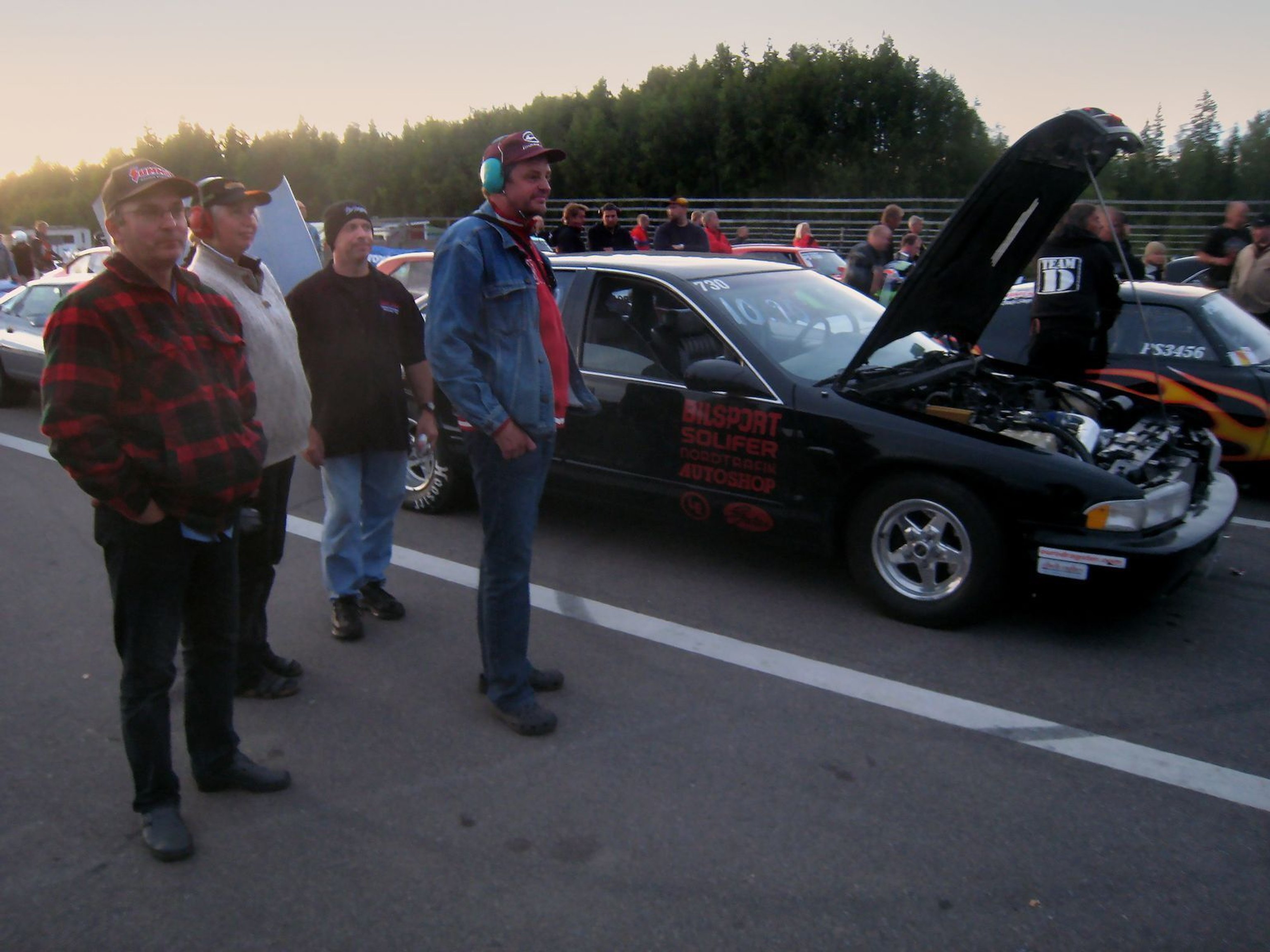 Söndagskvällen elimineringar höll på långt in på natten och blåstes av vid midnatt på grund av regndroppar. Men ljuset var kvar, vilket Karl tyckte var imponerande. FR. vänster Kent, Fru Agneta, Kvalelvan (som var kvaltvåa) samt en annan Impala SS-kompis från Umeå, n'Ola Åbergh. Jag var i Semifinal när det blåstes av, men hur gick det för Karl och Kent då? Kolla i tidningen!